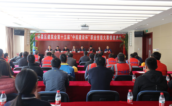 10月25日上午,怀柔区建筑业第十五届“中航建设杯”职业技能大赛颁奖典礼在江南官方注册总部三层多功能厅举行。怀柔区建筑业协会会长、大赛组委会副主任王贵军,区总工会副主席解忠明,集团公司总工程师、大赛组委会副主任陈劲一同参加,同时到场的还有各参赛单位代表及获奖选手共计50余人。